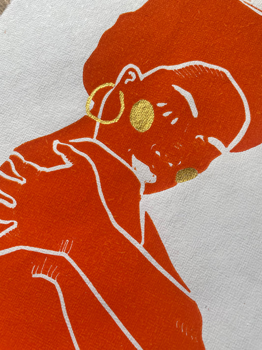 Charakterstück - Original Linoldruck ‚so viel Liebi‘