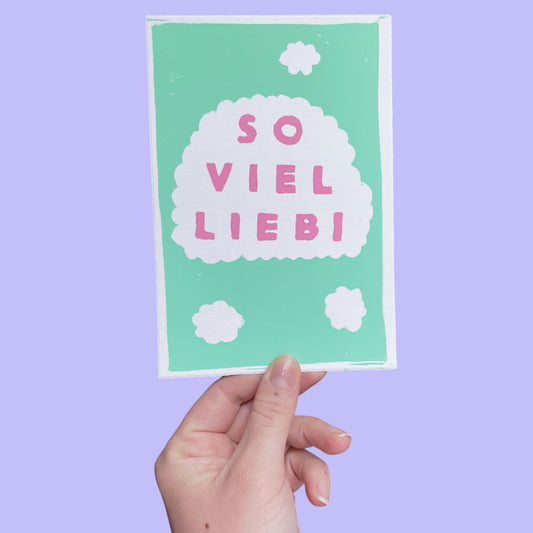 Karte Original Linoldruck - So viel Liebi (rosa)