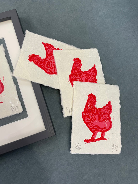 LIMITIERTE AUFLAGE - Mini Linoldruck Happy Chicken
